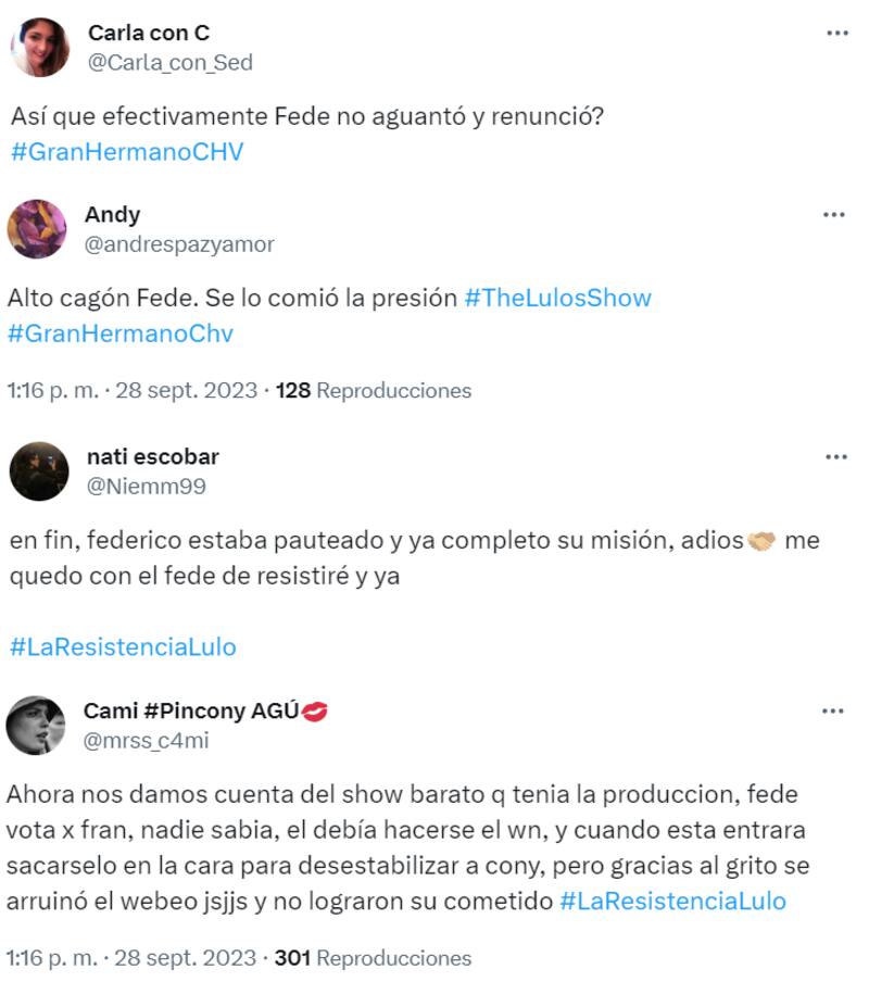 Si bien aún no hay una razón clara de su salida, puesto que las transmisiones de Pluto TV fueron pausadas y Chilevisión no ha hecho ningún comunicado, para muchos twitteros la salida de Federico Farrell de “Gran Hermano” Chile resulta ser muy curiosa.