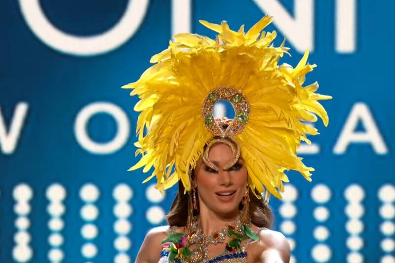 Pero la noche no estuvo completa si no hasta las presentaciones de los trajes típicos. Ahí Sofía Depassier se robó las miradas del público que llegó hasta New Orleans, Estados Unidos, con un llamativo outfit inspirado en el Desierto de Atacama.