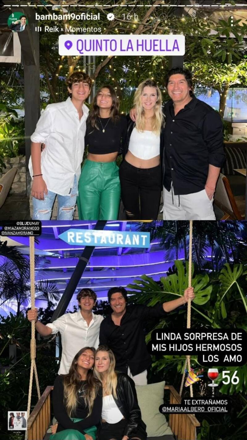 "Linda sorpresa de mis hijos hermosos. Los amo", escribió en una historia de Instagram Iván Zamorano, esto mientras posaba precisamente con sus descendientes en la entrada del local.