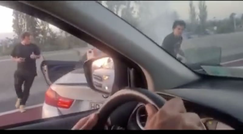Luego, las mismas personas muestran en el video que el "Chispa" había estrellado el auto en las barreras de la autopista y comienzan a insultarlo.
