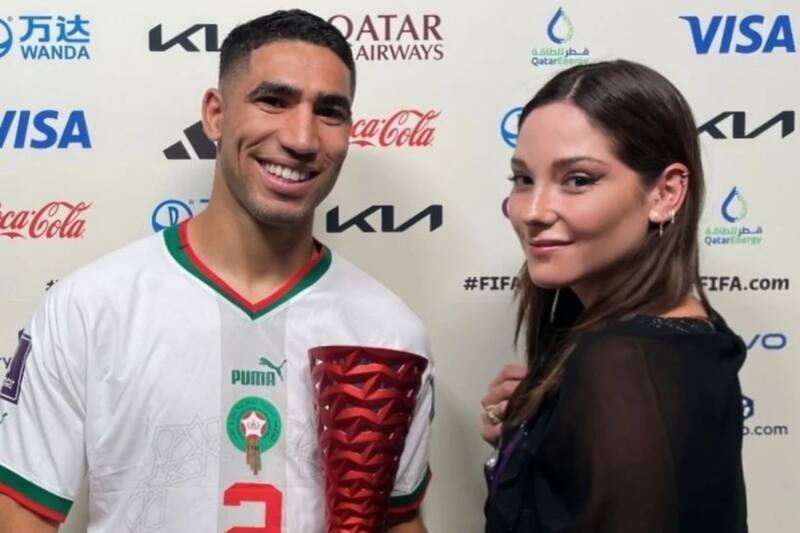 También, la reconocida influencer tuvo la oportunidad de viajar al Mundial de Qatar 2022, invitada por una marca de cervezas y pudo entregarle un premio a uno de los futbolistas de Marruecos.