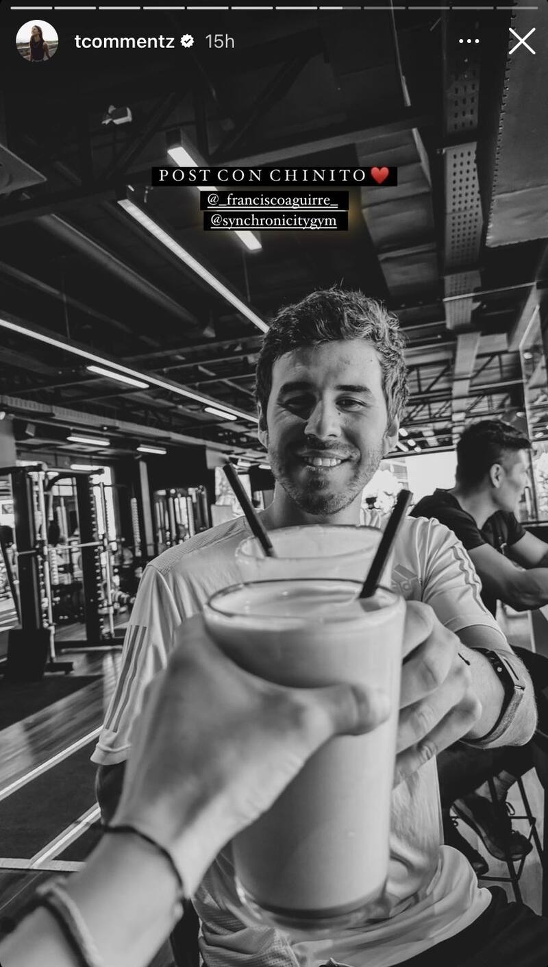 Para finalizar su jornada en el gimnasio, Teresita Commetz se dio un momento de relajo junto a su pareja. Los enamorados aprovecharon las instalaciones del gimnasio para tomarse en conjunto un batido energético post entrenamiento.