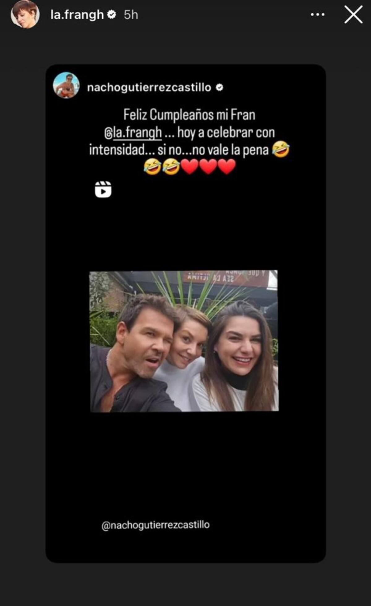 No fue el único que se decidió dedicarle un mensaje de cumpleaños, uno de ellos fue Nacho Gutiérrez que subió a sus historias de Instagram una foto de ellos donde le escribió lo importante que es para él.
