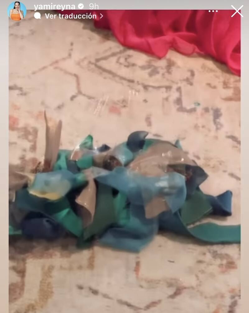 La comunicadora incluso mostróel posible outfit que utilizará para la Gala del Festival de Viña 2023, sin embargo no se logra dilucidar con éxito su forma, ya que el vestuario yacía en el suelo.