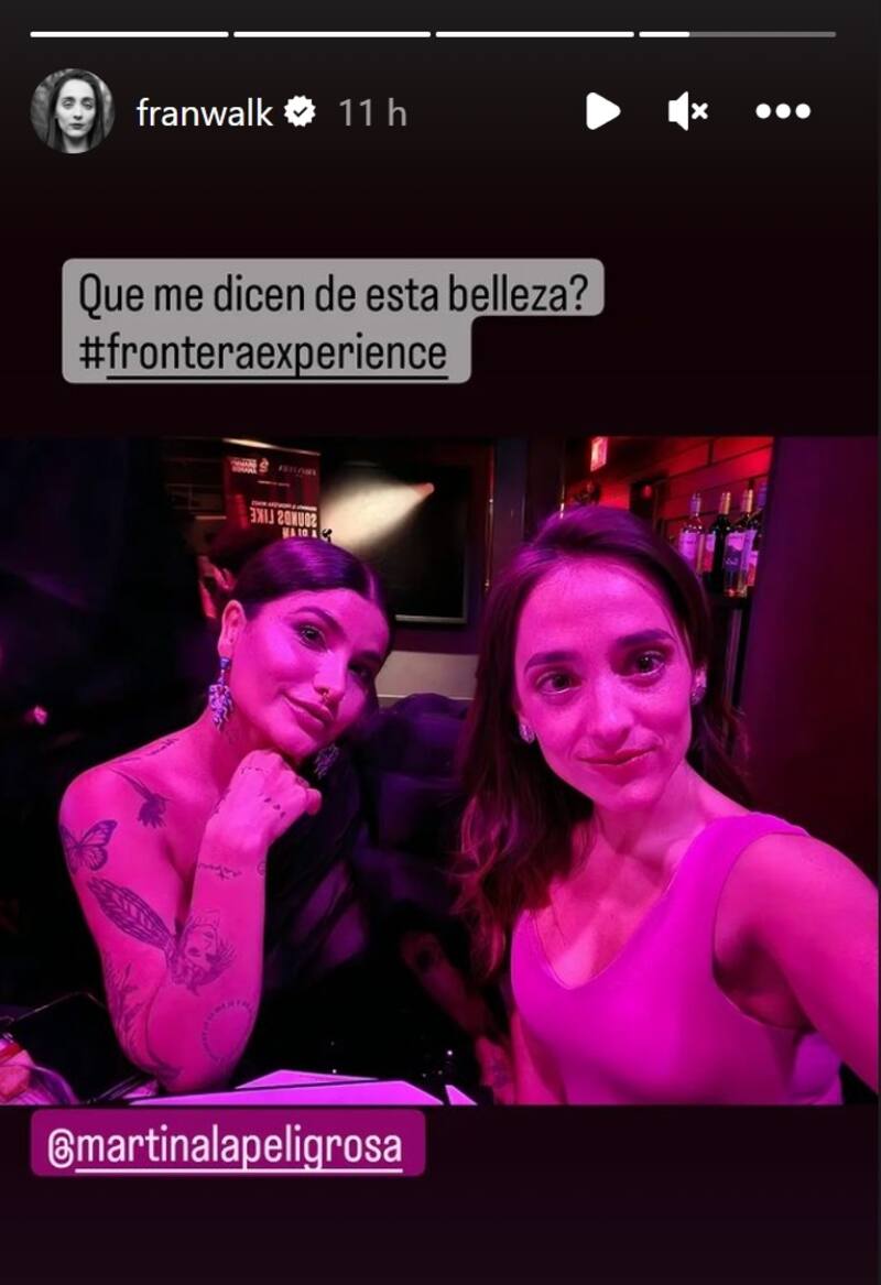 Sin embargo, Francisca Walker no está sola en su viaje, ya que en su cuenta de Instagram ha subido diferentes contenidos con Martina La Peligrosa, una popular cantante colombiana. La actriz publicó una fotografía junto a la artista y escribió: "¿Qué me dicen de esta belleza?".