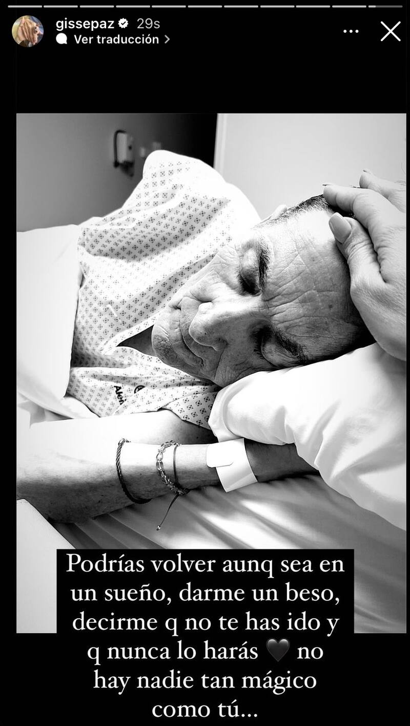 A sus palabras le sumó algunas postales que registró junto a su padre cuando este se encontraba hospitalizado y luchando contra las complejidades de su enfermedad. En una podemos ver a una cariñosa comunicadora abrazando a su progenitor, mientras que en la segunda lo acaricia con amor. En las últimas imágenes que hizo públicas, su padre comparte con uno de sus nietos y también junto a su hija que lo recuerda con amor.