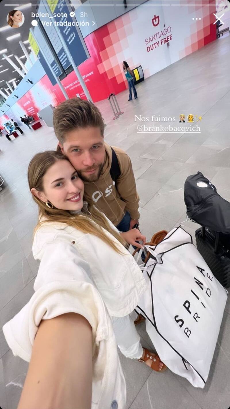 Durante la mañana de este lunes 6 de febrero, Belén Soto mostró a través de sus redes sociales que ya emprendió viaje a México junto a su esposo Branko Bacovich, motivados por la realización de la fiesta de su matrimonio.