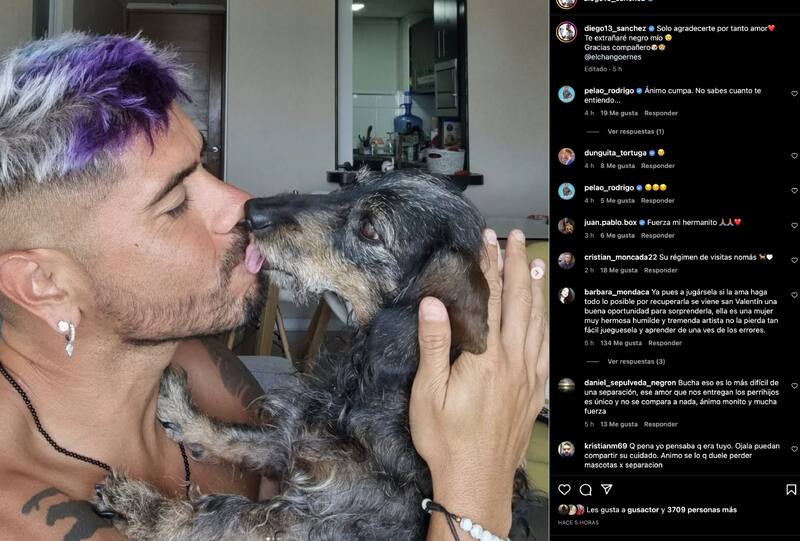 Ahora, Diego "Mono" Sánchez compartió una serie de registros con el perrito de Yamila Reyna, pero no tenía que ver con un motivo feliz. "Solo agradecerte por tanto amor. Te extrañaré negro mío. Gracias compañero", escribió junto a las postales.