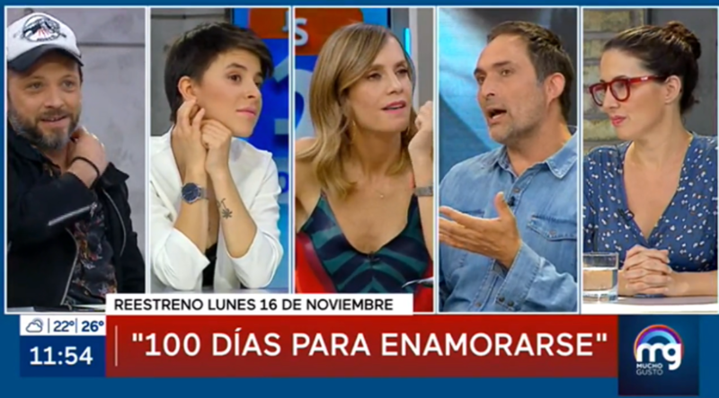 Durante esta jornada, Luz Valdivieso, Marcelo Alonso, Sebastián Layseca y Teresita Commentz fueron invitados al matinal "Mucho Gusto", para hablar del regreso de "100 días para enamorarse". La nocturna de Mega, después de varios meses sin ser transmitida, está preparando su regreso para el próximo 16 de noviembre a las 22:45 horas.