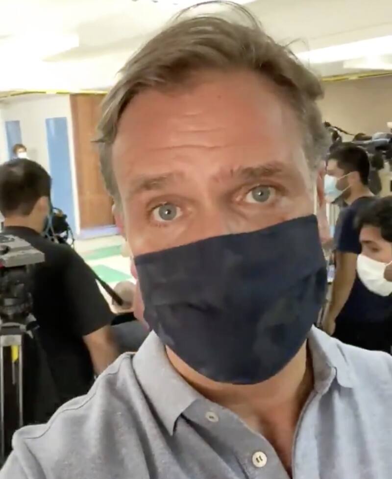 El periodista de "Bienvenidos", junto al tuit, adjuntó un video donde grabó el espacio dispuesto para la prensa, que era muy cerrado en comparación con el que tenían las autoridades, y claramente no había lugar para mantener la distancia social.