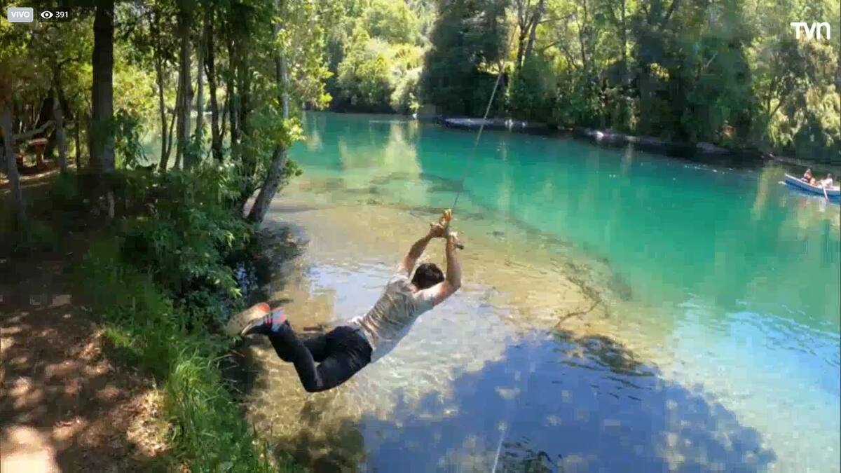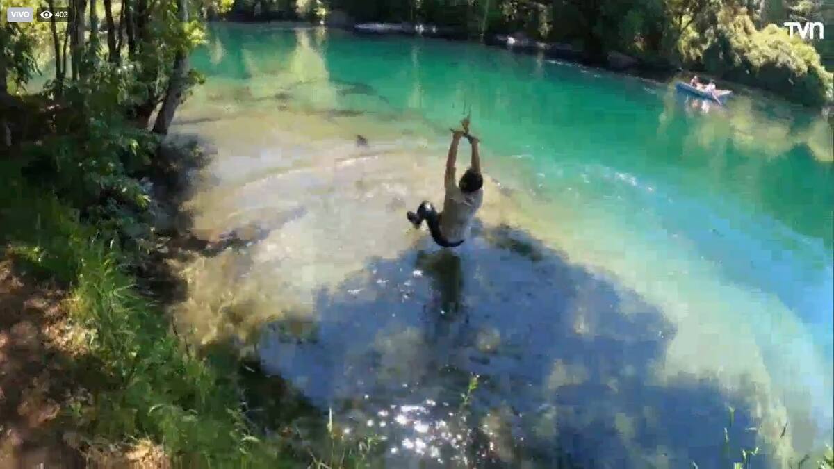 Ahí, el también panelista del “Buenos días a todos” quiso experimentar el llamado “salto del tarzán”, que consiste en una cuerda que permite lanzarse al Río Caburga. Sin embrago, el conductor tuvo la idea de lanzarse y volver a su lugar, pero no le resultó.