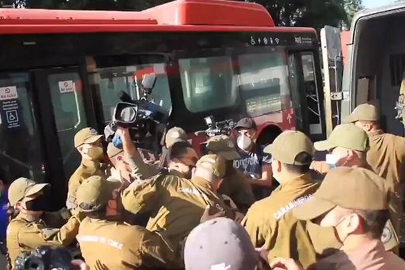 Una polémica detención quedó registrada por distintos medios de comunicación la mañana de este lunes, durante una manifestación de los estudiantes secundarios de la ACES en el ministerio de Educación. El camarógrafo de CHV y CNN, Álex Cuadra, fue detenido por Carabineros, mientras realizaba su trabajo.