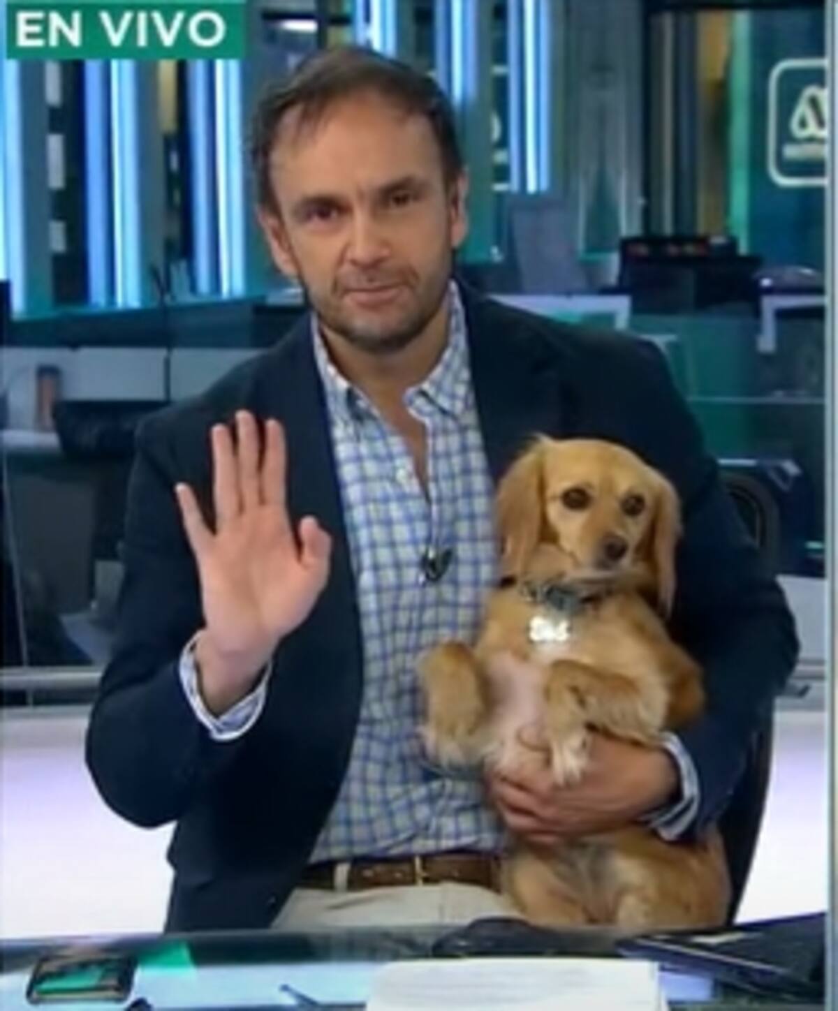 El conductor del noticiario se encontraba moderando el panel que discutía el sistema de pensiones, cuando un ladrido llamó su atención. "Venga con el tío Sepu", dijo al tomar en brazos a Paty y llevarla frente a las cámaras.