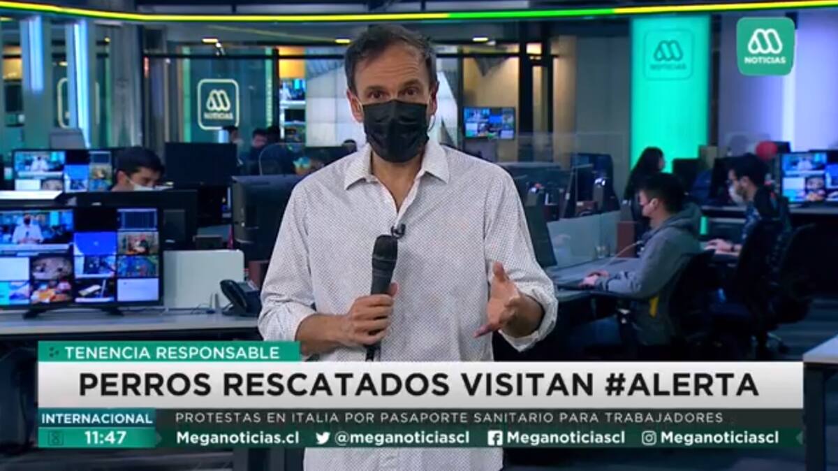 Rodrigo Sepúlveda protagonizó un divertido momento. Fue en la edición de este sábado de "Meganoticias Alerta" cuando una perrita irrumpió en el estudio y se acercó al periodista.