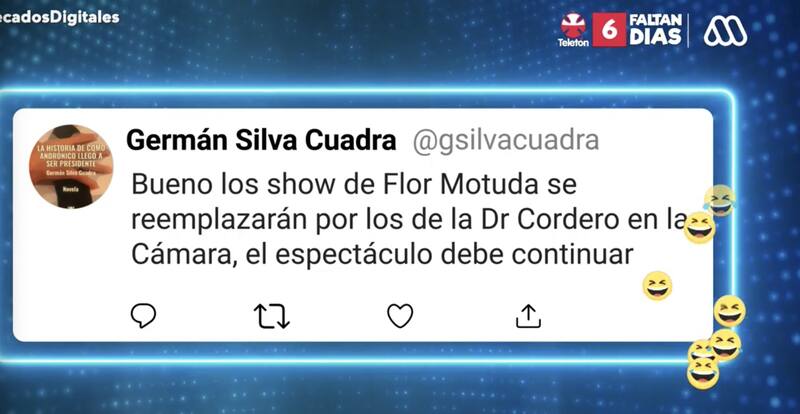 Pero esa no fue la única consulta que recibió. Otro celuvidente disparó: "Los show de Flor Motuda se reemplazarán por los de la doctora Cordero en la cámara, el espectáculo debe continuar".