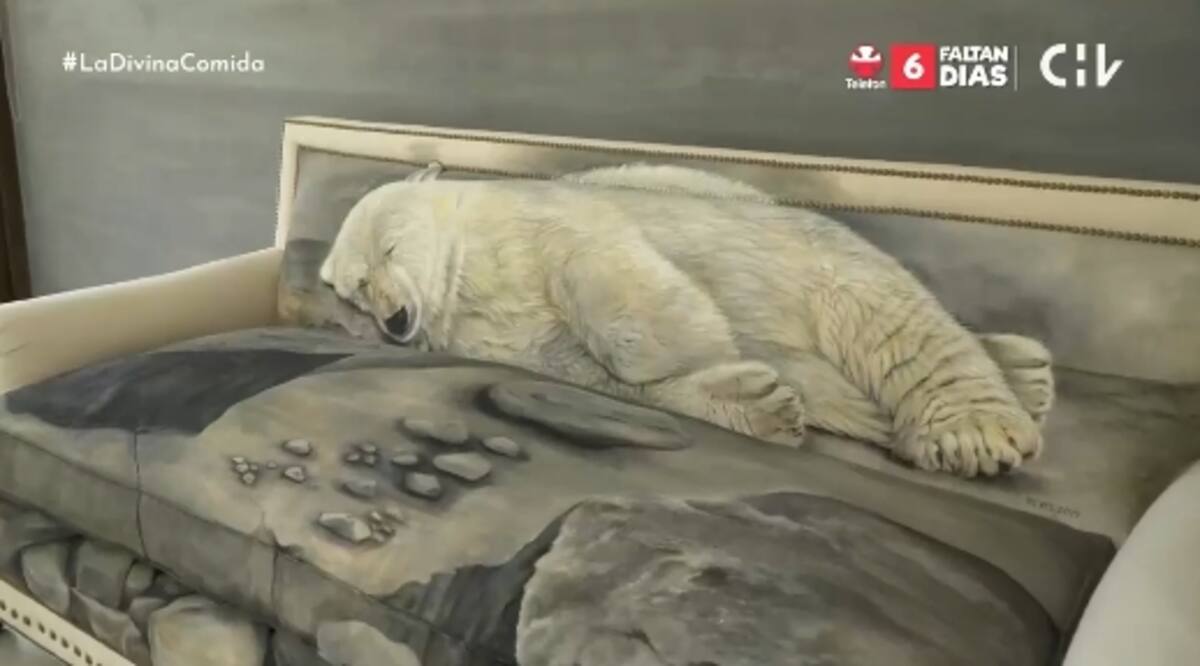 Pero una de las cosas que más llamó la atención de la maniquí, fue un sofá que mantenía en la sala de estar, el cual tenía una ilustración de un oso polar durmiendo. Según contó Kenita Larraín, con su esposo vieron el sofá -obra de una artista argentina- y se enamoraron de inmediato de él y contó que debieron esperar cerca de tres años, para por fin tenerlo en su casa.