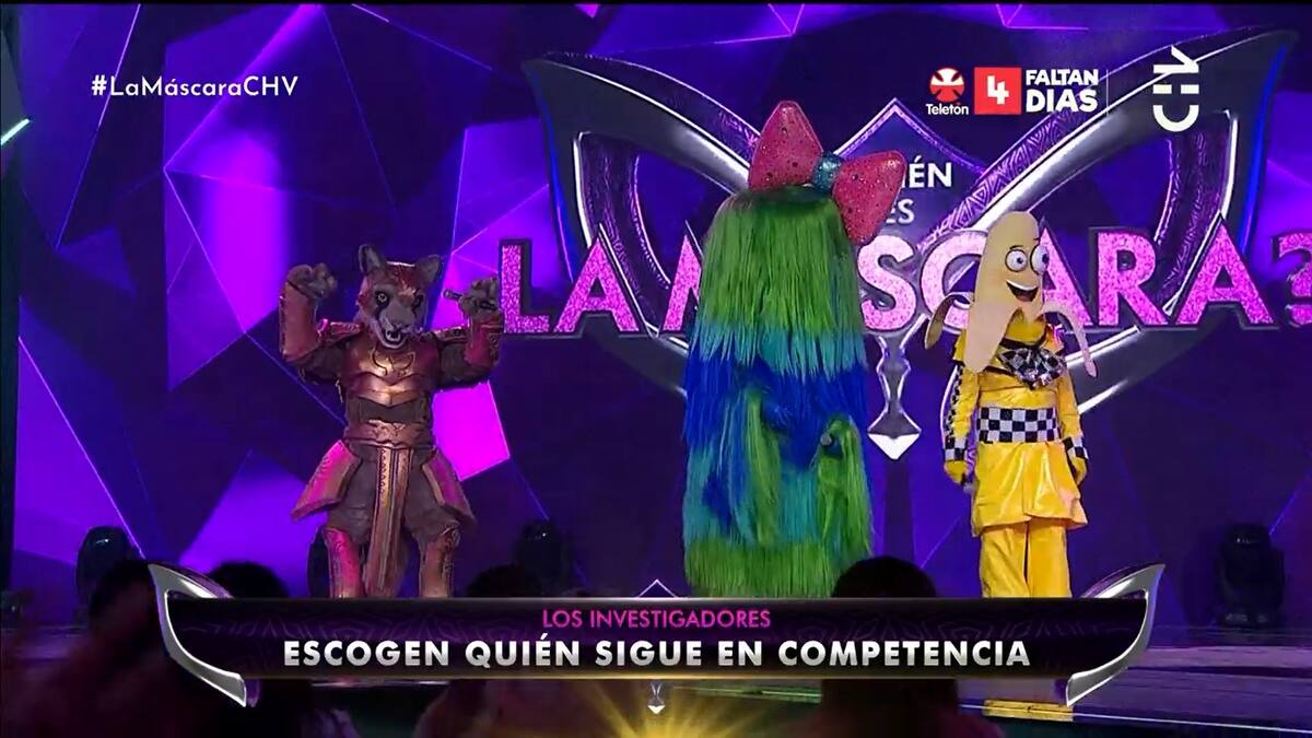 "Nos costó mucho ponernos de acuerdo, muy difícil", dijo Macarena Pizarro, lamentando tener que eliminar a un personaje en el primer capítulo. Así, determinaron que siguen en "¿Quién es la máscara? "Banana" y "Puma", siendo el primer eliminado "Pelos".