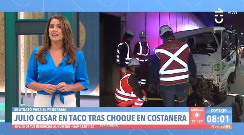 "Mire la cordillera de Los Andes y Julio César en el taco. Parece que hay un accidente en la Costanera Norte, está súper complejo porque estuvo harto rato con solo una vía habilitada, ahora ya hay dos", comentó la conductora mientras mostraban las imágenes desde el lugar.