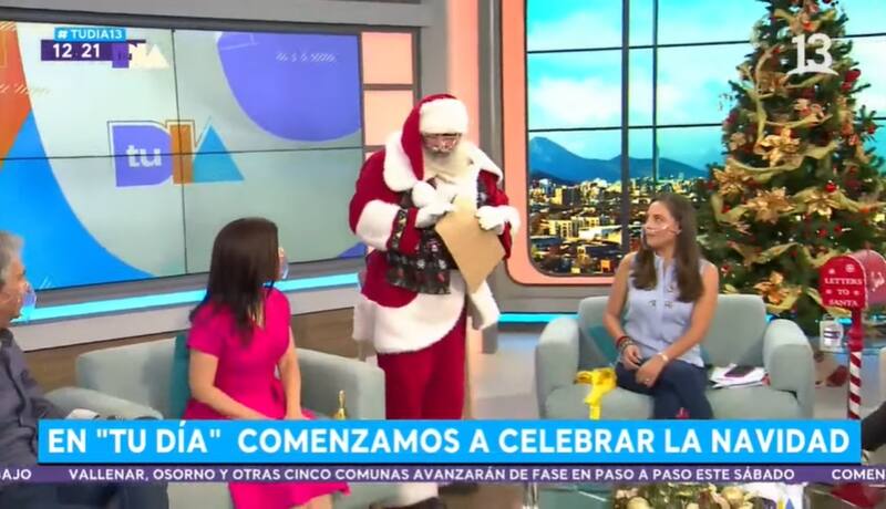 "Tu Día" celebró con todo la Navidad, y lo hizo con un programa que tuvo despachos a lo largo del mundo. Pero el panel, incluyendo a sus dos conductoras, Mirna Schindler y Ángeles Araya, vivieron un momento especial con la visita del Viejito Pascuero.