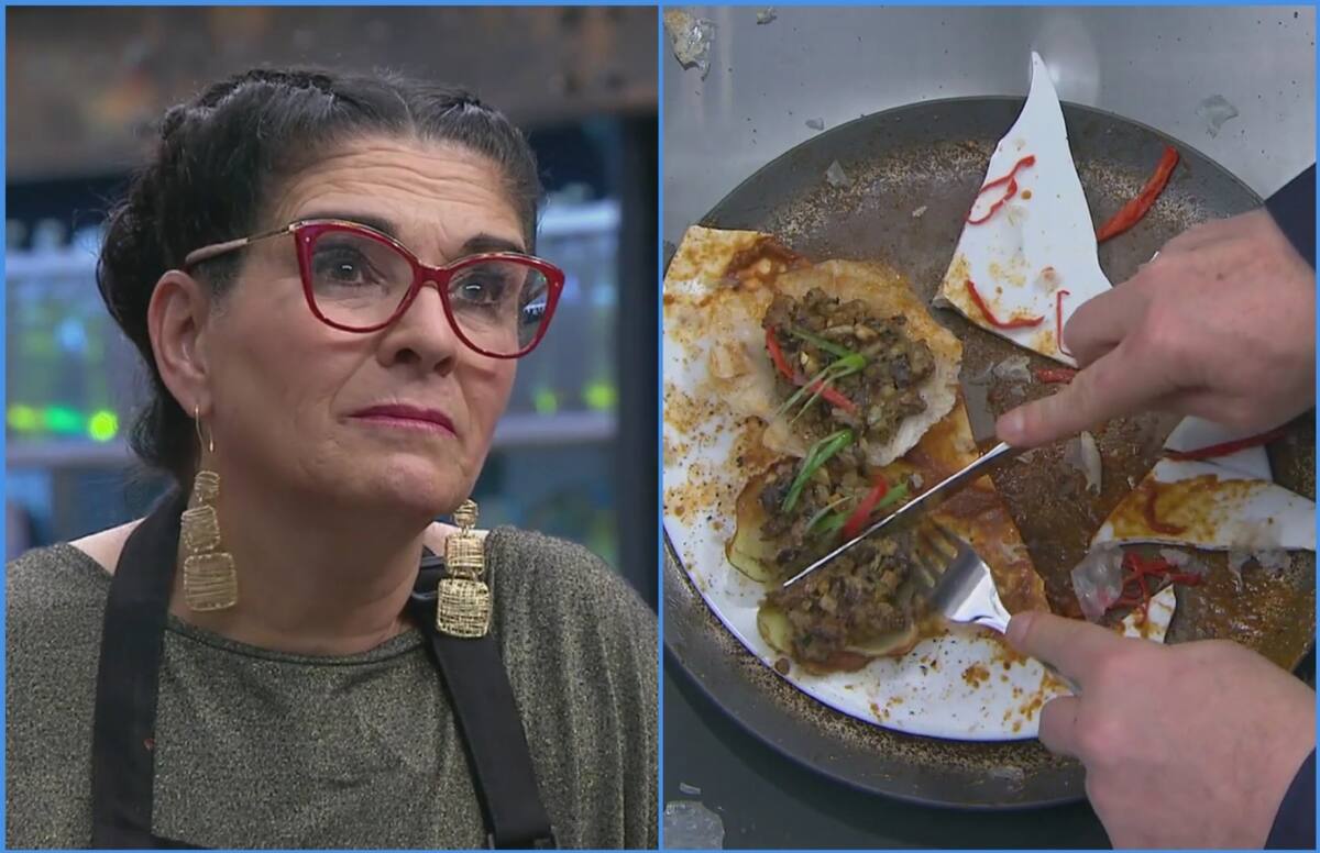 Al presentarse ante los chefs, la artista lanzó una salsa a su plato roto, acción que manchó a Fernanda Fuentes. "Pero, Pepi, ¿qué pasa?", aseveró muy indignada la jueza.