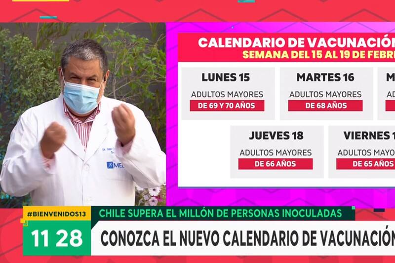 Este nuevo "Bienvenidos" no ha sido indiferente para el doctor Juan Carlos Molina. El geriatra ha sido uno de los profesionales de la salud, junto a Carolina Herrera, que han sido parte habitual del panel para conversar sobre los distintos temas de la pandemia. Una labor que cumplió este miércoles, al referirse al proceso de vacunación que se ha llevado adelante en estos días en todo el territorio nacional.