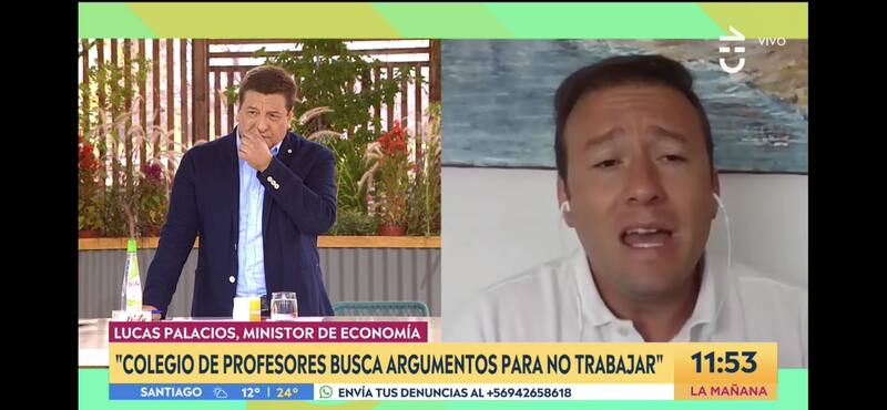 Julio César Rodríguez responde a las declaraciones hechas por el ministro de Economía, Lucas Palacios, la jornada de este martes. El secretario de Estado se refirió al trabajo de los profesores asegurando que "todos los gremios, lo único que quieren es trabajar… Y por eso llama tanto la atención que uno ve que el Colegio de Profesores lo único que busca son argumentos para no trabajar".
