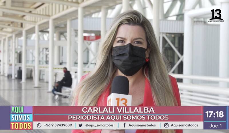 "Nos encontramos en el Aeropuerto de Pudahuel. En este momento, no se ve tanta gente y la situación está un poco más controlada que ayer, respecto a la llegada de turistas que tuvieron que esperar más de siete horas para ser trasladados a las residencias sanitarias por falta de hoteles", informó la periodista, después de saludar a Ángeles Araya, conductora del espacio.