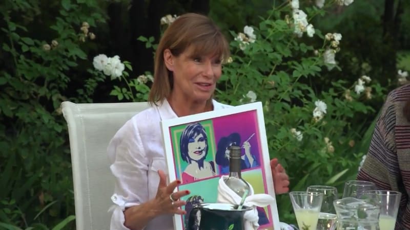 El momento se dio cuando recibió un especial regalo de uno de los comensales, el que se trataba de un cuadro que retrata su larga carrera en la actuación.