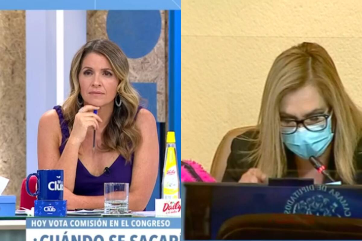 La animadora de Chilevisión estaba comentando junto a Julio César Rodríguez y un panel compuesto por Heraldo Muñoz (PPD), Paula Narváez (PS), Jorge Durán (RN) y Tomás Fuentes (RN), quienes escucharon en vivo la intervención de la diputada del partido humanista quien emplazó al gobierno.