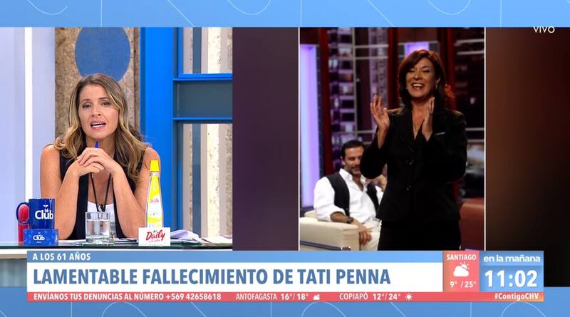 Otra periodista tocada por la noticia fue Monserrat Álvarez, quien pausó la pauta de "Contigo en la mañana" para dar a conocer la noticia al aire y dedicar sentidas palabras para Tati Penna. "Esta mujer fue muy importante para la televisión chilena. Yo aprendí mucho de ella. Fue mi referente como periodista", partió diciendo la animadora en el matinal de CHV.