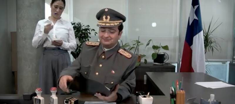 "¡Comuníqueme!... ¿Cómo que no?... ¡Sí sé que es fin de semana!, ¡qué venga igual!", dice el militar al teléfono, impaciente. Tras esto, revisa unos informes y llama a la oficina de su secretaria, señalándole: "Lucía, venga de inmediatamente ¡Quiero leer la carta una vez más! ¡Tráigamela!".