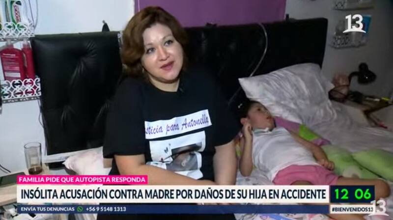 Una rueda de camión apareció en la ruta de la mujer y le provocó el accidente que resultó en graves consecuencias para su hija Antonella, quien ahora tiene cinco años y quedó con daños neurológicos. Fiscalía la acusa de ser la responsable de la situación, atribuyéndole un cuasidelito de lesiones graves y gravísimas en contra de su hija. La situación le impide demandar a la empresa propietaria del camino de la Ruta del Maipo, a quienes exige indemnización.