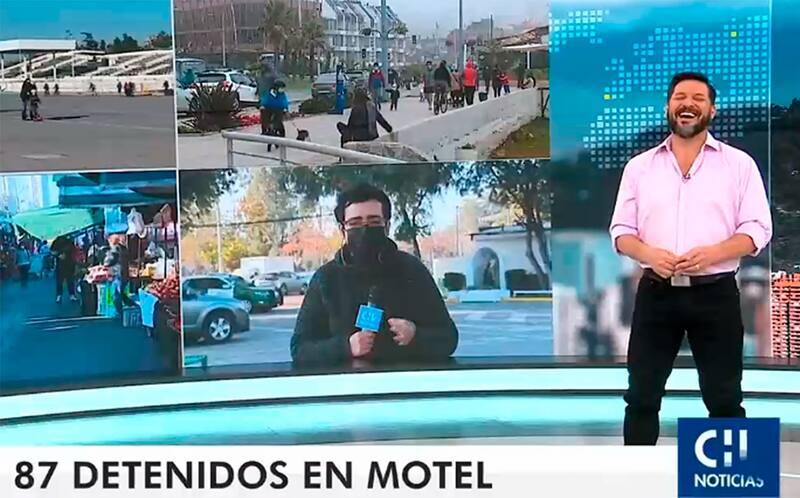 Orellana comenzó su despacho contando "no fueron 10, no son 20, son 87 personas las detenidas al interior de un motel" incumpliendo todas las medidas sanitarias, lo que de inmediato desató la risa de Rafael Cavada, por lo insólito de la situación.