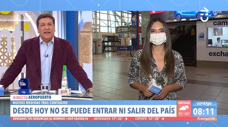 En tanto, Daniela Muñoz se retiró del lugar para recoger otros testimonios de los presentes en el aeropuerto, aunque la situación no pasó desapercibida para los animadores en el estudio.