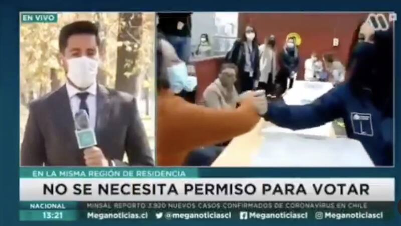 El primero de ellos se vio a eso de las 13:30 horas, cuando el periodista, Cristian de Medici realizaba un despacho en vivo para entregar detalles de las elecciones de este fin de semana.