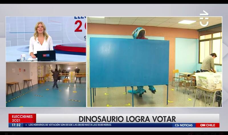 En medio de eso, Mónica Rincón preguntó si los dinosaurios no tienen preferencia para votar y Rafael Cavada comentó "No deja de ser una paradoja que un dinosaurio venga a votar por la extinción de una constitución. En todo caso este es el único dinosaurio que se acepta en la política chilena".
