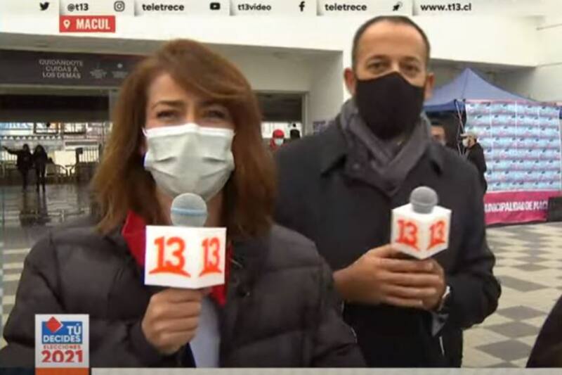 Canal 13 dispuso de inéditas duplas para cubrir una histórica jornada que se vivirá este sábado y domingo en Chile. Miguel Acuña con Ángeles Araya, Sergio Lagos con María José Soto y Tonka Tomicic con Alfonso Concha, sorprendieron esta mañana de sábado reporteando en terreno la elección de los constituyentes, gobernadores, alcaldes y concejales, por lo que los canales de televisión han desplegados todos sus rostros en terreno.