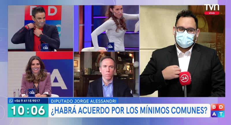 Mientras el parlamentario entregaba sus percepciones sobre los "mínimos comunes" de la posible renta básica universal, la periodista lo invitó a revisar las declaraciones del diputado de oposición, Marcelo Schilling, aprovechando de excusarse. "Yo tengo que pedir las disculpas del caso… vuelvo al tiro. Ya vengo, ¿ya?", dijo, generando las dudas en sus colegas. "¿Por qué?", le preguntó el comunicador. "Volverá con buenas noticias", expresó María Luisa Godoy.