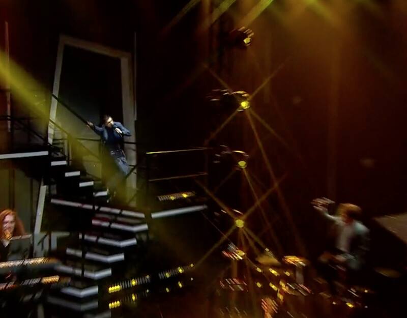 Tras esto, se subió a la escalera del estudio y corrió de un lado a otro, imitando la peculiar voz de Axl Rose, cuando interpreta el final de "Paradise City".