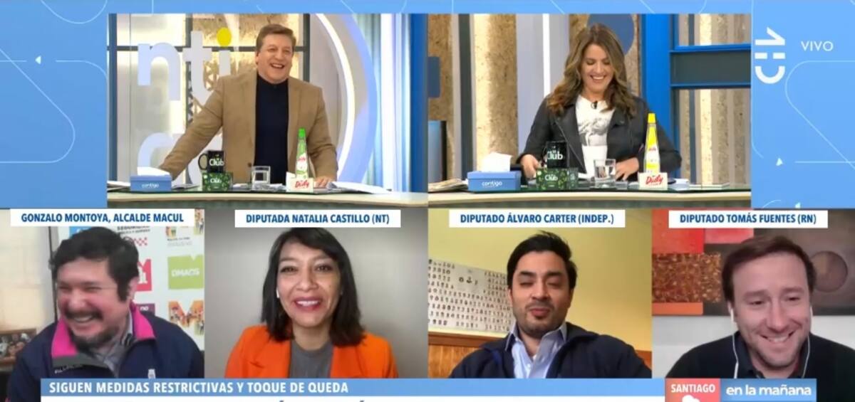 De esta manera, tras volver de una pausa comercial, el periodista comenzó a presentar a los diputados Natalia Castillo (NT), Álvaro Carter (IND), Tomás Fuentes (RN) y al alcalde de Macul, Gonzalo Montoya, quienes fueron invitados para debatir acerca del Estado de Excepción, el cual durante la jornada del jueves fue extendido por 90 días más, hasta el 30 de septiembre.