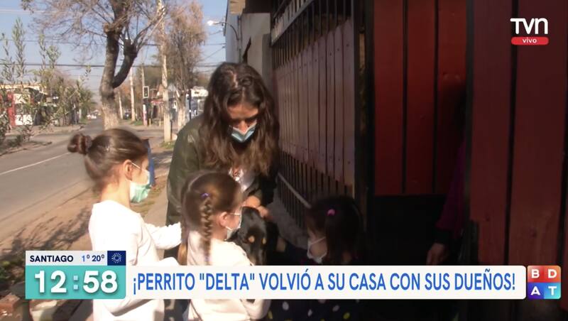 María Luisa Godoy conversó un rato con la familia y la madre no podía entender cómo Kovu llegó desde San Joaquín hasta TVN, ubicado en Providencia. "Él es libre. Desde el martes (que se perdió) yo llegué del trabajo y salimos a buscarlo. Dije a lo mejor está atropellado por ahí, por allá", dijo la mujer, que tuvo un final feliz por encontrar a la mascota.