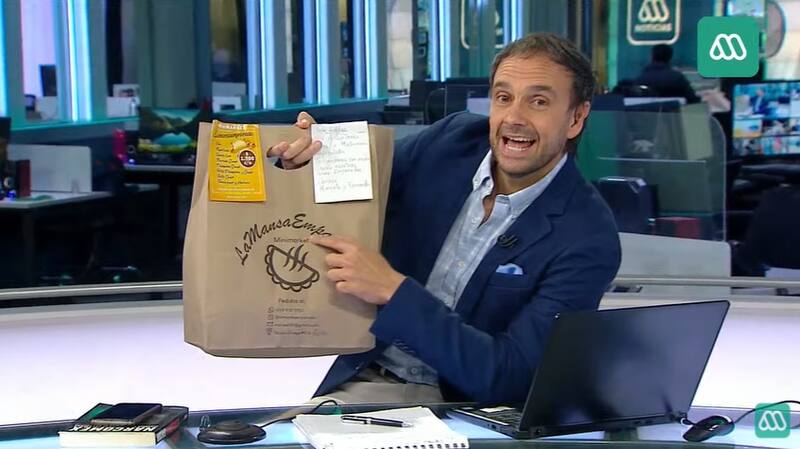 El presentador del noticiario de Mega contó a los televidentes que desde "La Mansa Empanada" le enviaron varios ejemplares de regalo, los que decidió compartir con el equipo.