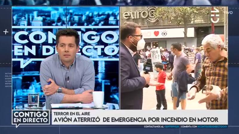 "Todo lo que hacen es mentir (...) Todos los periodistas (...) Están comprados", se le escuchó gritar al hombre desde lejos, mientras el reportero hablaba sobre el avión que aterrizó de emergencia en Iquique, tras una falla.