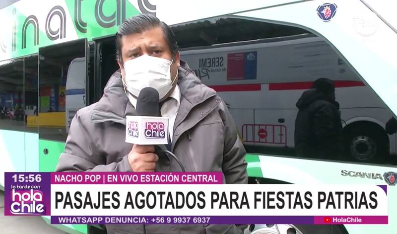 Una tensa discusión tuvo Nacho Pop con un trabajador de la Seremi de Salud en la estación de buses en Estación Central durante un despacho que realizó el periodista con "Hola Chile".