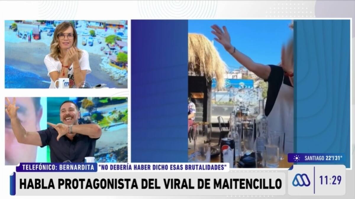 Durante el fin de semana se dio a conocer un registro de una vecina de Maitencillo que realizó un alterado reclamo en un restaurant que se convirtió en viral en las redes sociales. En ese contexto, en un enlace con "Mucho Gusto", la afectada, que se presentó como Bernardita, explicó la situación ocurrida, siendo parodiada por José Antonio Neme.