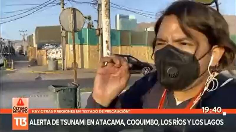 "El agua ha estado subiendo", comenzó a gritar el notero mientras salía corriendo en lo que parecía ser una calle poco concurrida, para agregar que "se está recogiendo el mar, nosotros vamos en estos instantes corriendo, saliendo del sector que estábamos".