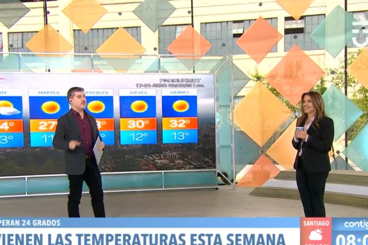 Todo inició cuando estaban comentando los cambios de clima que se registraron en el litoral central y también en Santiago. Ahí la periodista le preguntó al hombre del tiempo de Chilevisión sobre cómo estará el tiempo en los próximo días.