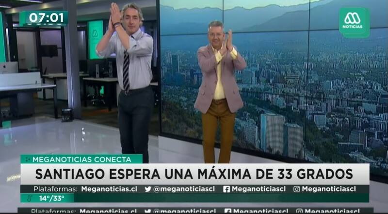Fue precisamente en la sección del tiempo donde el metereólogo tuvo su momento, comenzando con una música de la zona sevillana, lo que provocó que el lector de noticias se acercara a este e iniciaran el baile.