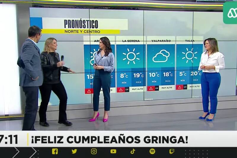 "Tenemos a alguien de cumpleaños, es alguien muy especial para nuestro equipo... ¿Quién será?", lanzó la meteoróloga, ya que Marianne Schmidt no estaba frente las cámaras del noticiero matinal de Mega.