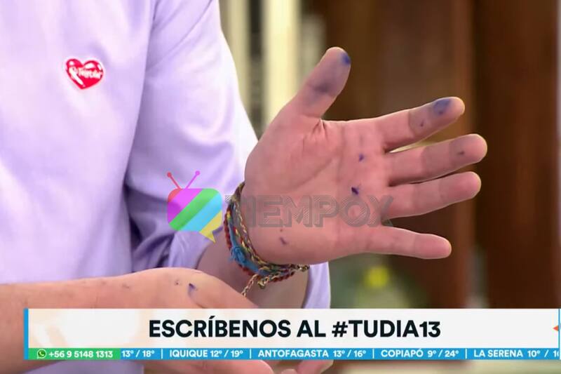 Sin embargo, a pesar de su felicidad, José Luis Repenning protagonizó un chascarro en a los pocos minutos de estar en pantalla, esto ya que se manchó sus manos con la tinta del lápiz pasta que estaba usando.